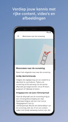 The app gives you all the information you need for screening and/or rehabilitation treatment at CIR. We take you through it step by step. This way, you are well prepared when you have an appointment at CIR.