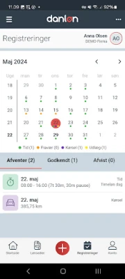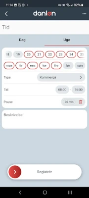 Den 1. juli 2024 træder lovkravet om tidsregistrering i kraft. Med Danløns app er det nemt at registrere komme / gå tider og pauser på specifikke dage. Du kan også med få klik registrere for flere uger eller måneder på én gang.