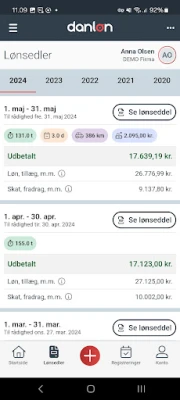 I Danløn appen har du altid dine lønsedler ved hånden. Du kan nemlig se dine lønsedler fem år tilbage i tiden. Det giver dig hurtigt overblik over blandt andet løn, pension, resterende feriedage og skat.