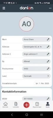 Du kan redigere personlige oplysninger i appen, så din arbejdsgiver altid har de rette informationer om din bank og din adresse.
