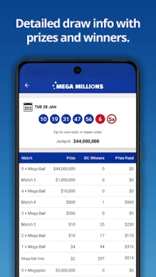 Powerball, Mega Millions, Lucky for Life, DC2, DC3, DC4 and DC5 also include a full breakdown displaying the number of winners and amount paid out for each prize level.