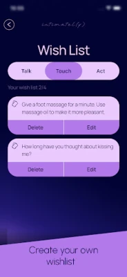 Ignite passion with **Intimately: Couples Game**, the ultimate app for personalized love challenges. Deepen your bond with heartfelt questions, exciting dares, and a discreet wishlist for sharing fantasies. Perfect for cozy date nights or long-distance romance!