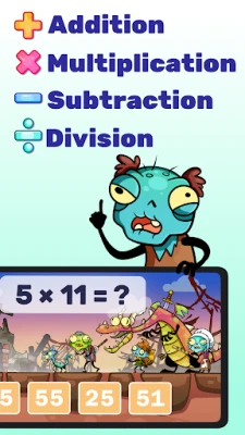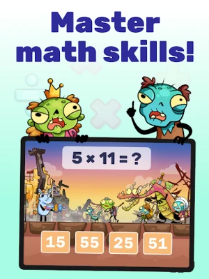 Do you want to test, practice or improve your math skills? Then you are in the right place! We invite brave kids and adventurous adults to join the fight against zombies and save the world from invasion in our fun math games. Solve different math problems, unlock new locations, get rewards and become a math pro.