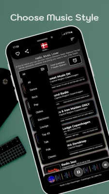 The ideal radio player to listen live and for free to the best music, online radio, FM radio and AM radio from Denmark!