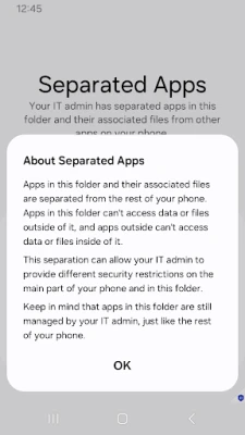 Designed for enterprises that need to protect sensitive work data, Knox Separated Apps allows IT admins to separate third-party apps from corporate apps on fully managed devices.
